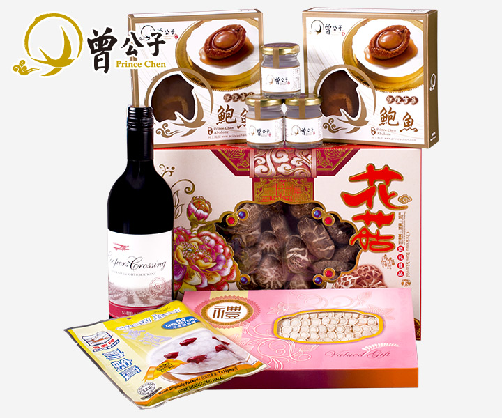 | 商品规格 | 曾公子鲍鱼(2颗装)- 2盒, 曾公子燕窝 40ml - 3瓶, 红酒 - 1瓶, 花旗参 - 1盒, 花菇 300g - 1盒, 雪蛤 - 1包 |